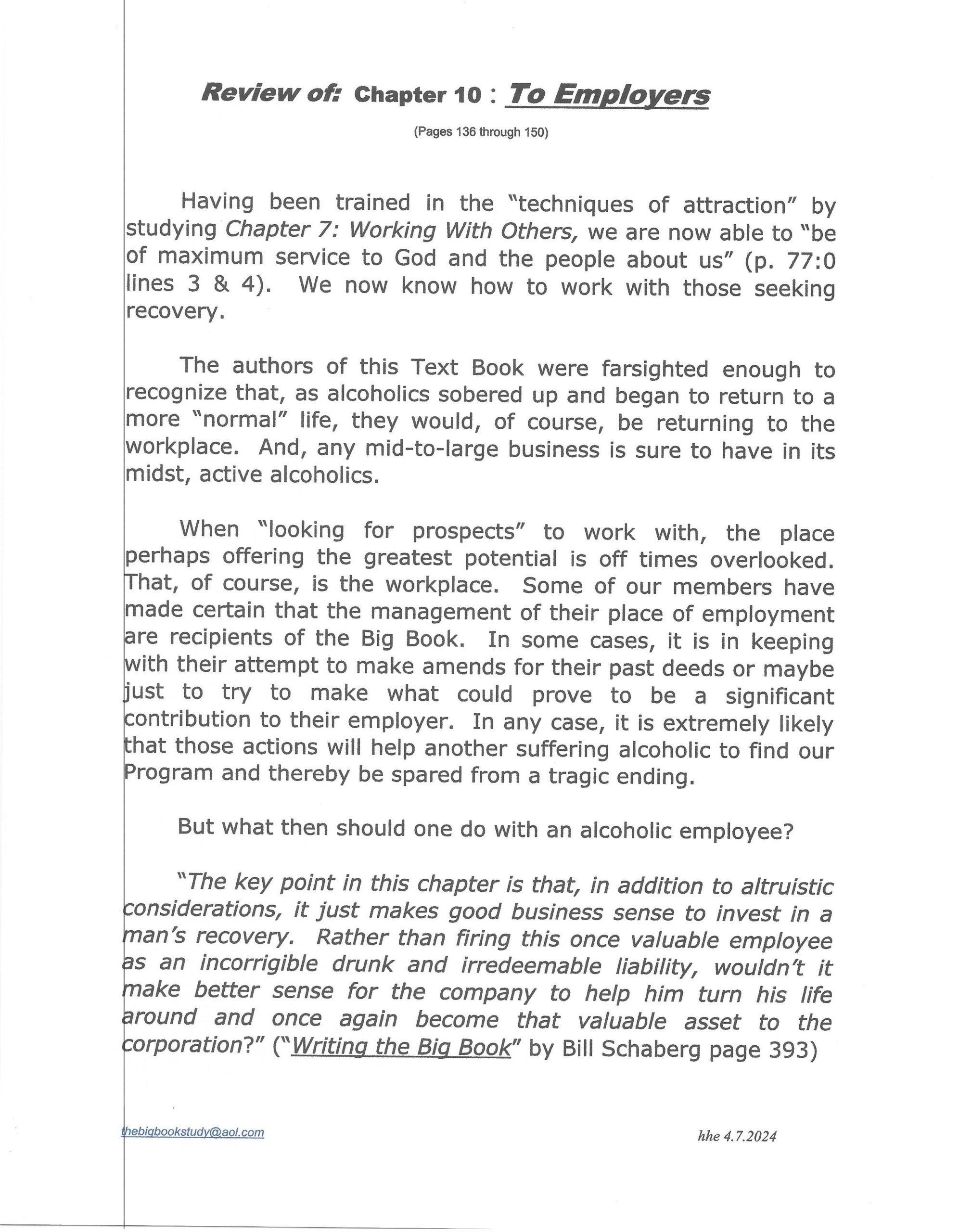 (10/12/2025) The Big Book Comes Alive Week 58: To Employers pg. 144:3 to 149:0